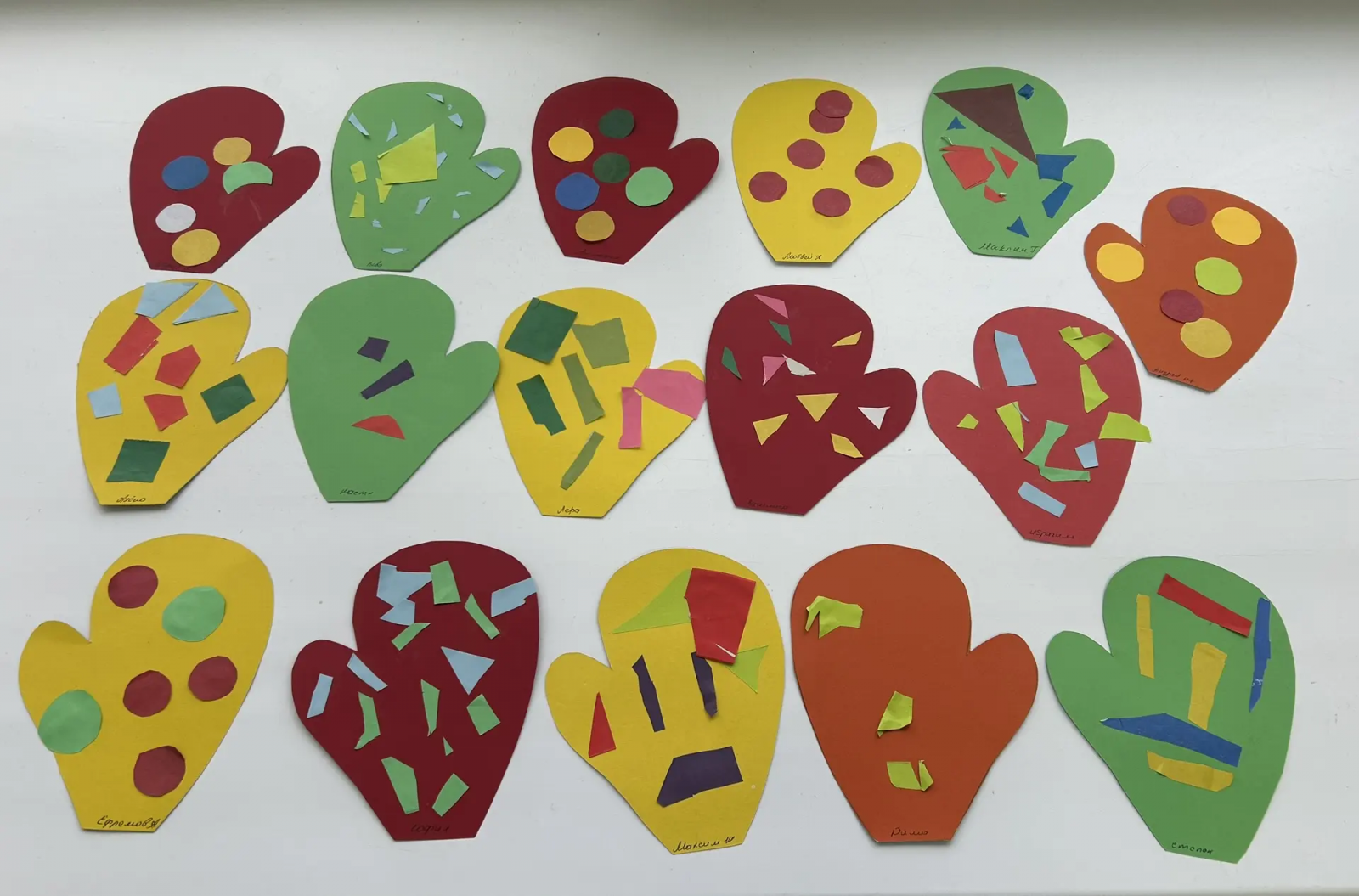 Аппликация — одно из любимых занятий малышей в детском саду. Этот продуктивный вид деятельности тесно связан с познанием окружающего мира и играет большую роль в умственном воспитании ребенка. Дети украшали варежку из вырезанных фигур. Вспоминали и закрепляли умение правильно работать с ножницами и клеем! Ребятам было очень интересно и они с большой радостью украшали свои варежки